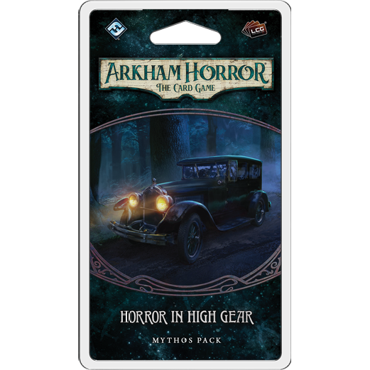 Strap in for a breakneck race to the finish with the Esoteric Order of Dagon in hot pursuit with Horror in High Gear, the third Mythos Pack in The Innsmouth Conspiracy cycle for Arkham Horror: The Card Game! Vehicles surge to the forefront in this expansion as you drive your cars along the winding cliffside roads outside of Innsmouth. Alongside this unique scenario, you’ll find a full assortment of player cards for every aspect, unlocking new skills, allies, and more.