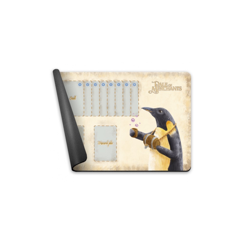 Playmat for one player. There are designated spots for stall, deck, and discard pile with additional space for cards in your schedule and a character card.