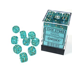 7. CHX 23815 Translucent 12mm d6 Teal/White Block (36)