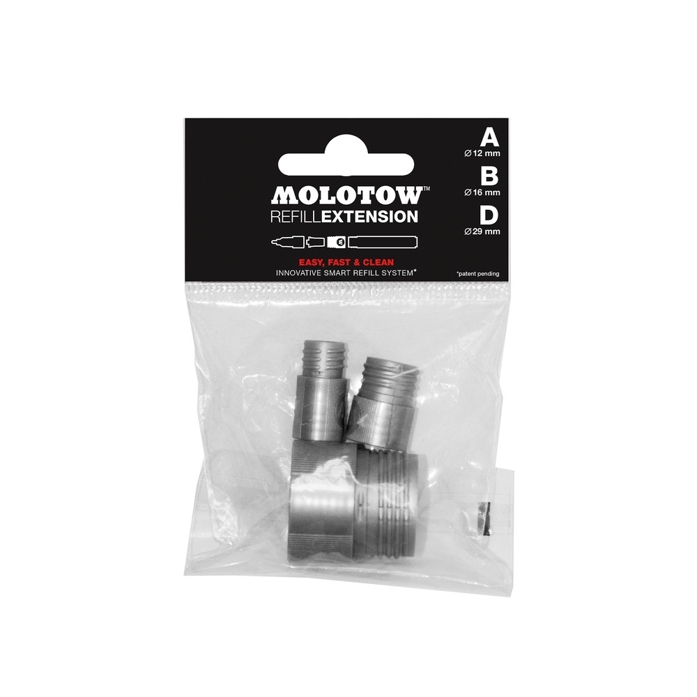 The idea of the Refill Extension has totally revolutionized the refill technology of markers. Never again greasy hands, and even the mixing of new color shades becomes child’s play. At a time with raw materials and increasing prices, MOLOTOW painting tools with exchangeable tips and a refill function are not only a cheap solution, but they also guarantee innovative sustainability!