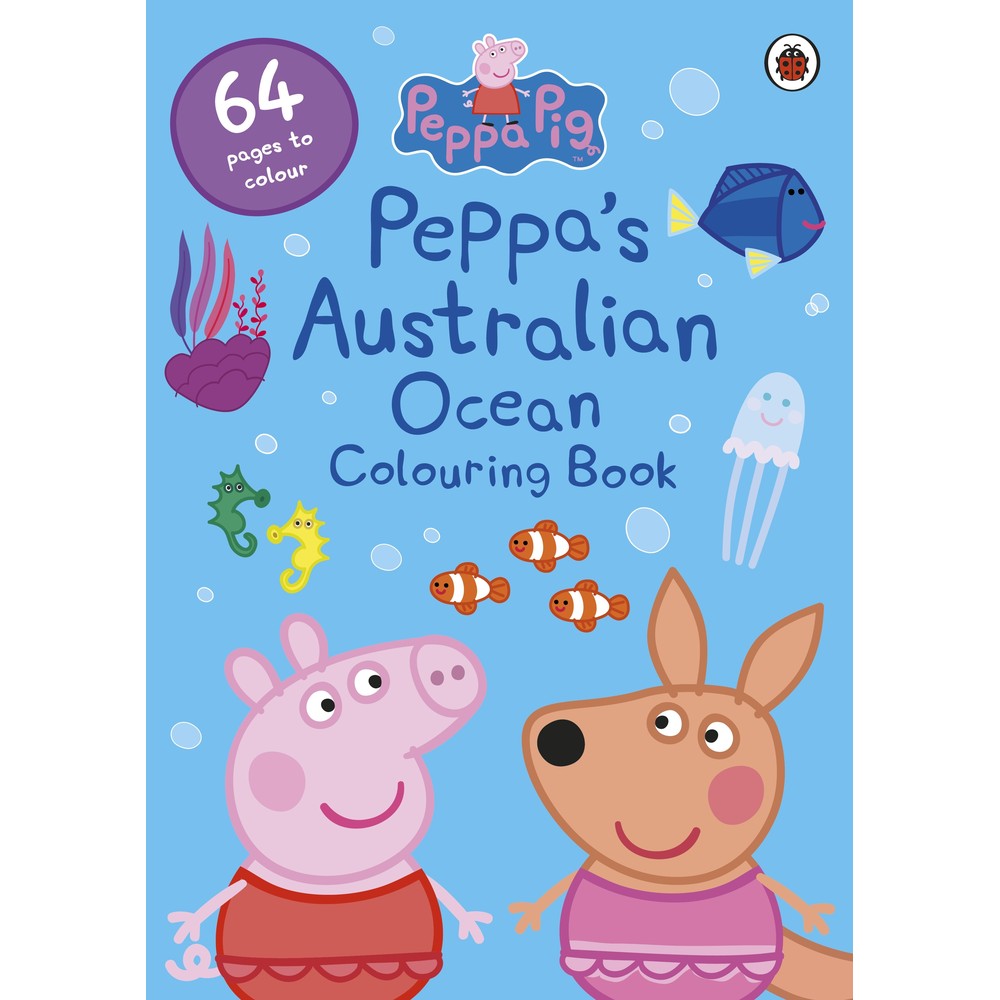 Peppa is visiting her friend Kylie Kangaroo in Australia - colour their fun adventures as they have a great day out at the beach and enjoy everything Australia has to offer.