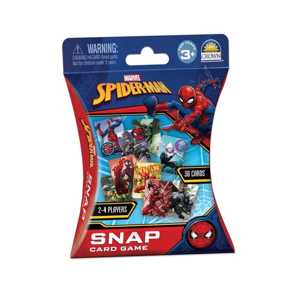 Enter the action packed world of Marvel's Spider-Man in this family favourite game of Snap featuring 36 cards! Players deal the cards out equally and take turns placing the cards face up. Get ready to "Snap" when the card is a match. It's the fun, easy matching game for all the family.